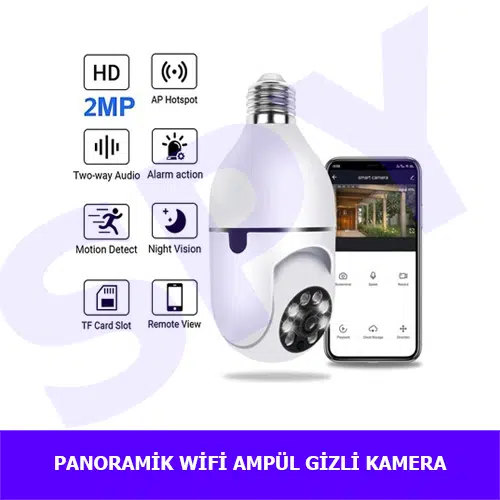 Maksimum geniş açı ve kesintisiz canlı izleme imkanı sunan en gelişmiş çözüm: Panoramik 360 derece Wifi Ampül Kamera. Bu wifi ampül kamera, panoramik 360 derece geniş açısıyla hem küçük hem de büyük mekanlarda ideal görüntü almanıza imkan tanır. Canlı izleme ve video kayıt seçeneklerini bir arada bulunduran panoramik 360° wifi ampül kamera, batarya sorunu olmaksızın tamamen elektrikle çalışarak kullanıcı dostu bir deneyim sağlar. Ürünle birlikte verilen ücretsiz uygulama sayesinde tüm özellikleri mobil cihazınızdan yönetebilir, sınırsız bir şekilde 7/24 izleme gerçekleştirebilirsiniz. Ayrıca, lamba fonksiyonu da görebilen bu çok amaçlı cihaz, düşük enerji tüketimi ile ekonomik bir alternatif sunar. Her yönüyle fayda sağlayan ampül kamera, uygun fiyatı ve zengin özellikleri ile dikkat çekiyor.